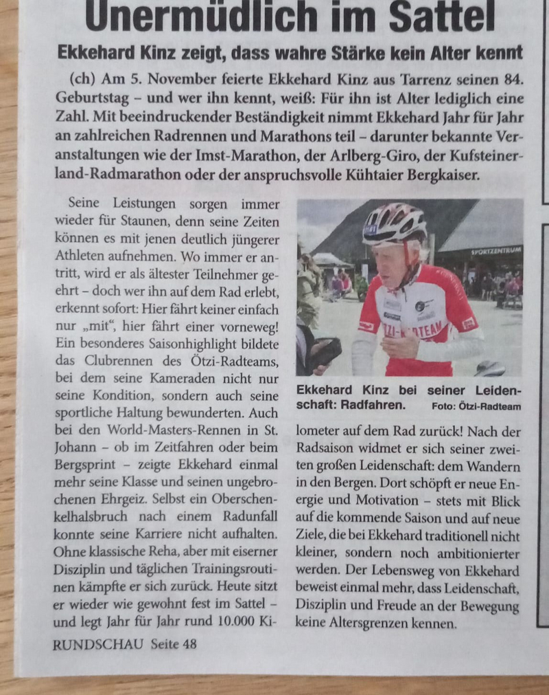 Zeitungsartikel über unseren Ekkehart Kinz zum 84. Geburtstag